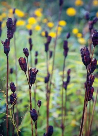 strand iris är en av de perenner som står länge efter blomning och får vackra fröställningar.