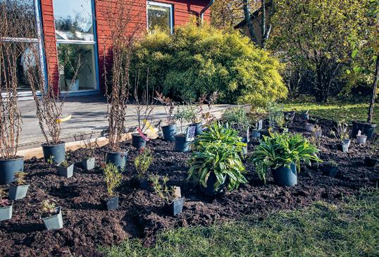 gräsmattan har fått stryka på foten för en helt ny rabatt. Jordförbättra, sätt ut växterna och plantera!
