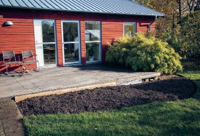 3 – d u kan nu välja om du vill tillföra mer humus till jorden. Sprid då ut 5–10 cm kompost eller barkmull kombinerat med näring (till exempel kogödsel, biokol, hönsgödsel) över hela ytan och vänd ner detta ett spadtag.