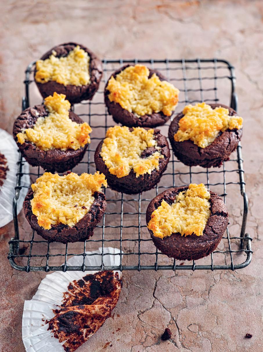 GLUTENFRITT Byt vetemjöl mot 2 dl glutenfri mjölmix. VEGANSKT Byt smör och grädde mot växtbaserade alternativ, ersätt äggen med ½ dl kikärtsspad och använd vegansk choklad. FÖRVARING & HÅLLBARHET Förvaras i burk med tättslutande lock. Browniemuffinsen håller i en vecka i skafferi och tre månader i frys.