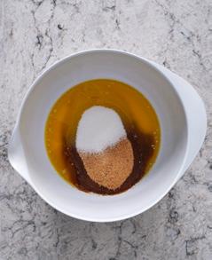 2. Vispa ihop ägg och strösocker lätt i en skål.