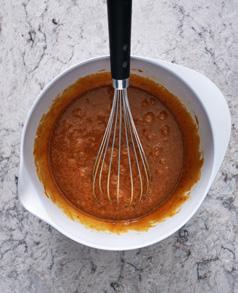 4. Blanda de torra ingredienserna i en separat skål och vänd sedan ner dem i äggblandningen. Rör till en klumpfri smet.