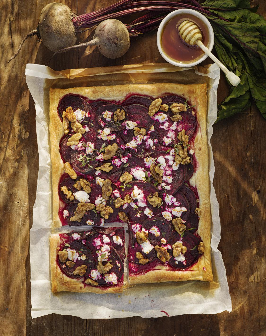 Smördegstarte med fetaost och rödbetor