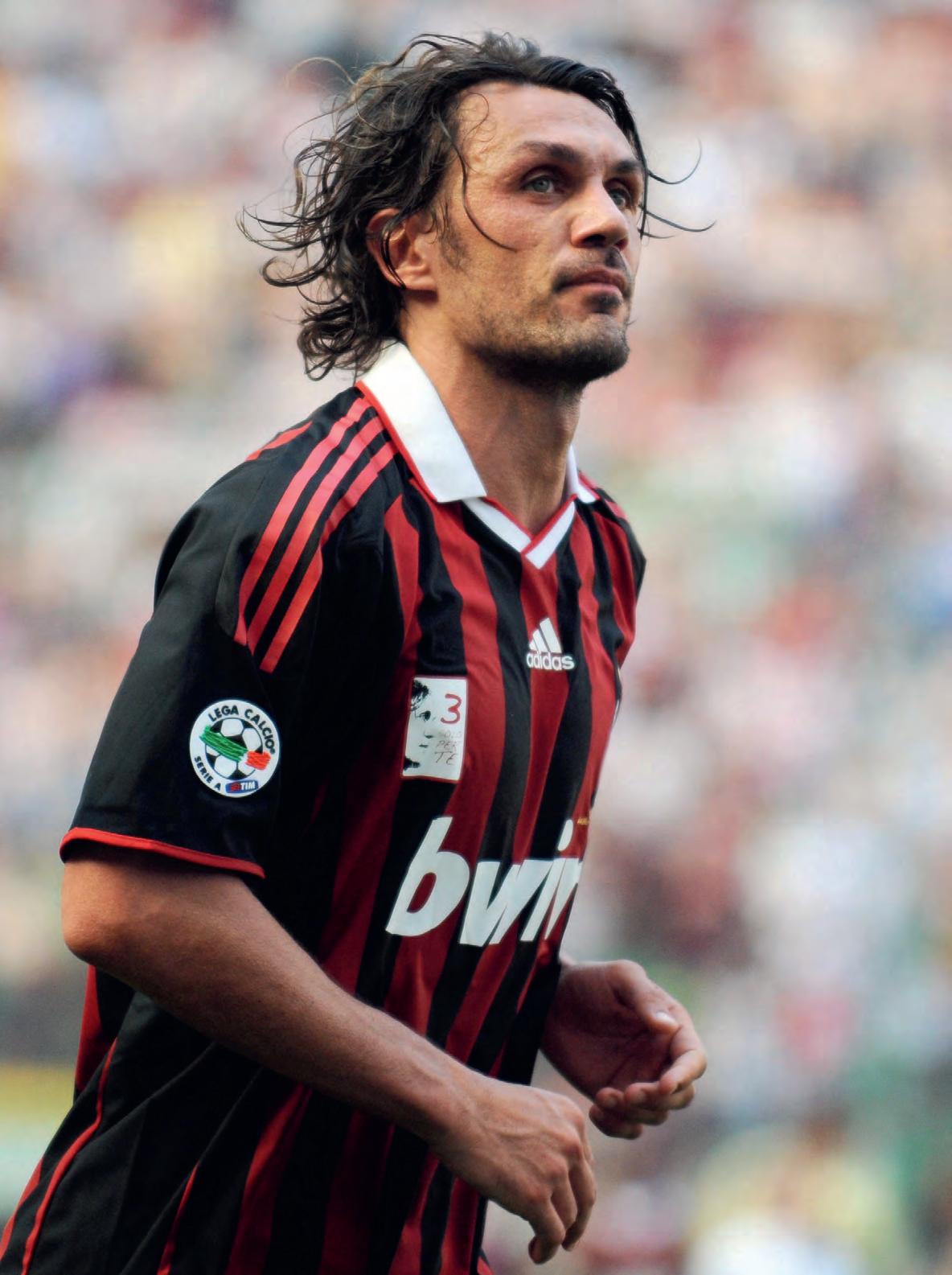 Paolo Maldini spelade hela sin karriär i AC Milan, även som junior, 1978-2009. Legendarisk vänsterrespektive mittback.