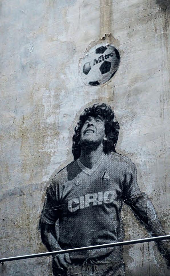 Diego Maradona avbildad på en vägg. Legend i Argentina och italienska klubben Napoli.