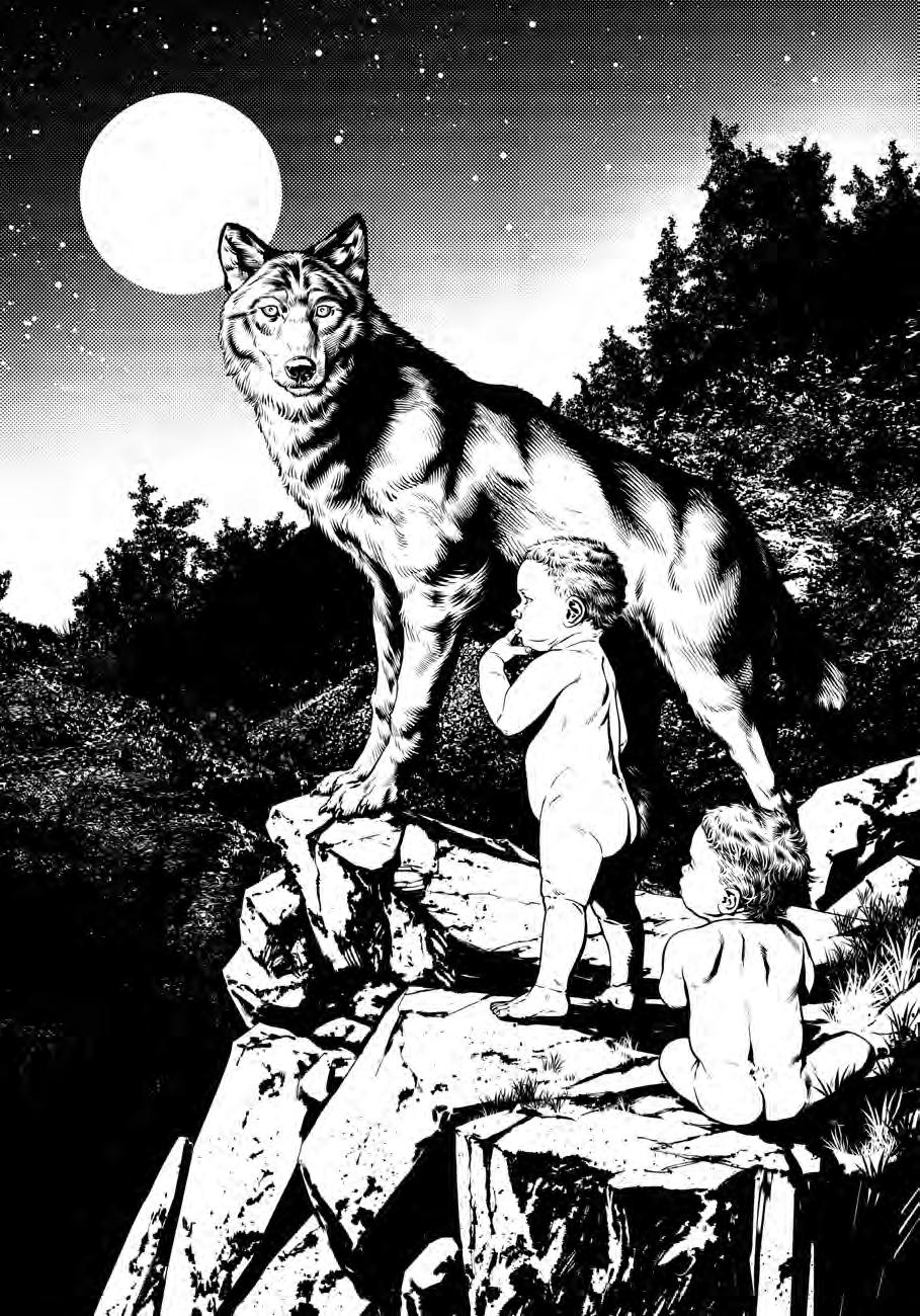 Romulus och Remus dricker färdigt mjölken och gräver in fingrarna i Lupas sträva varma päls. Hon låter dem kravla upp på ryggen och börjar gå. Lupas hjärta är lätt som en fjäder. Hennes vargbarn är försvunna, men nu har hon två nya! Hon är inte längre ensam. Men skogen är full av faror. Ingen får skada barnen. I en glänta gömmer hon Romulus och Remus under några grenar. Nu har hon något att leva för. På dagarna är hon en best som jagar efter byten att sätta tänderna i, på kvällarna lägger hon sig bredvid tvillingarna medan de diar hennes mjölk. Lupa vet inte att Romulus och Remus är söner till en gud och barnbarn till en kung. Hon vet bara att hon älskar dem, att hon är beredd att göra vad som helst för att skydda dem.