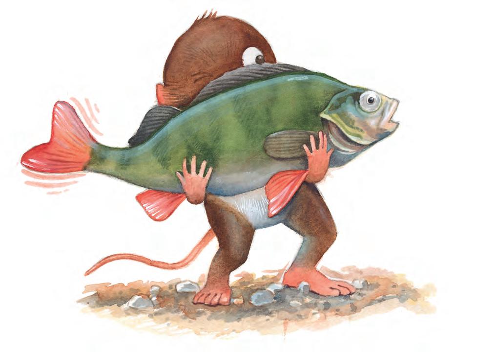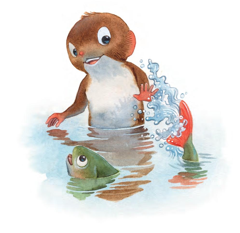 ”Jag ska hjälpa dig”, säger Vips, ”men då måste du bäras. Kan du hålla andan en liten stund? Jag menar, fiskar andas ju inte luft.”