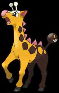 Girafarigs svans har ett litet huvud. Munnen hugger instinktivt mot alla fiender som närmar sig Pokémonen bakifrån.