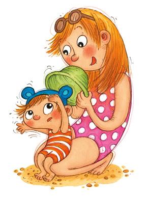 – På med solhatt, säger mamma. – Nej, säger Dam-Dam. Inte solhatt. Dam-Dam vill ha sin Dam-Dam-mössa.