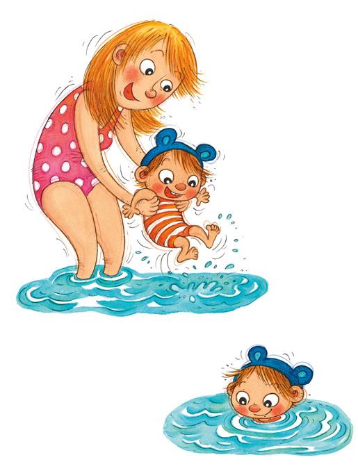 Mamma skojar med Dam-Dam. Upp i luften, ned i det blå.