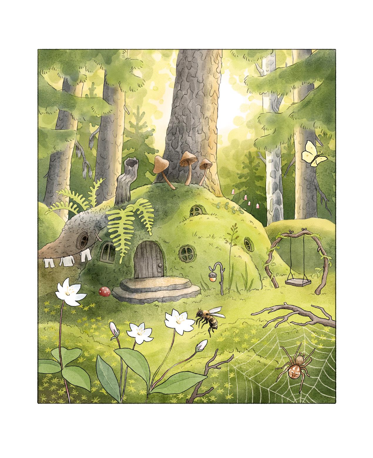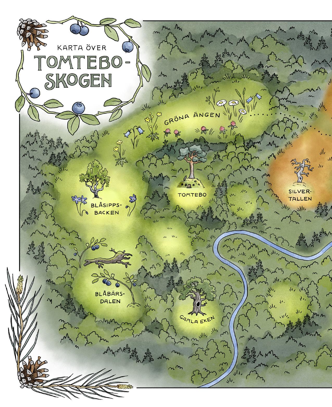 Välkommen till tomteboskogen! Om du tar stigen över myren, fortsätter förbi Gröna ängen och klättrar uppför Blåsippsbacken så kommer du fram till gläntan där jag, Kajsa, bor med mina tre bröder Pär, Truls och Tusse, i vårt eget lilla Tomtebo. Mamma och pappa bor också här förstås och varje dag kommer djuren och fåglarna och hälsar på.