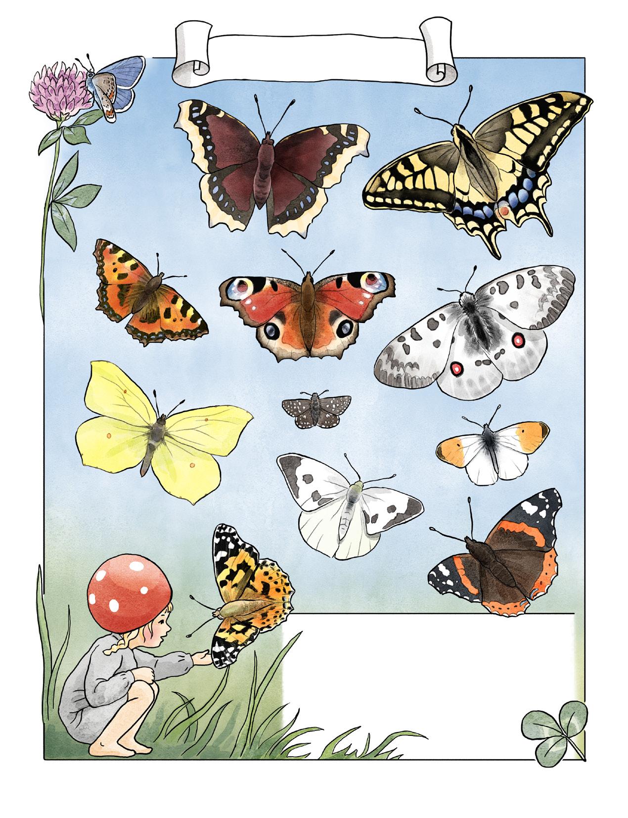4. Nässelfjäril 5. Påfågelöga 6. Apollofjäril