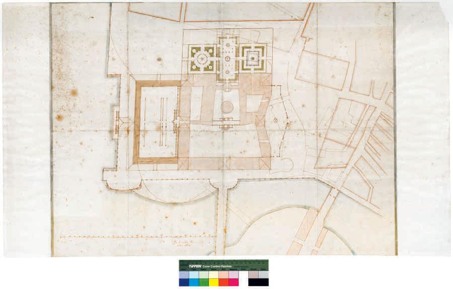 – Karl XI var nämligen endast fem år gammal – beslutade om att en detaljerad uppmätning av hela slottsanläggningen skulle utföras. Denna plan har varit helt avgörande för klarläggandet av slottets framväxt sedan medeltiden. Uppmätningsritningen blev även till stor nytta för Nicodemus Tessin sedan denne fått i uppdrag att återuppta planeringen inför en mer genomgripande ombyggnad (BILD 56 ). Hans far, hovarkitekten Nicodemus Tessin den äldre, hade efterträtt Jean de la Vallée i de tidigare projektarbetena. Dessa hade fortsatt även efter 1660 men inte lett fram till några beslut av påtaglig art. Det dröjde tre decennier innan hans son kopplades in. Tolv år hade förmyndarregeringen under Hedvig