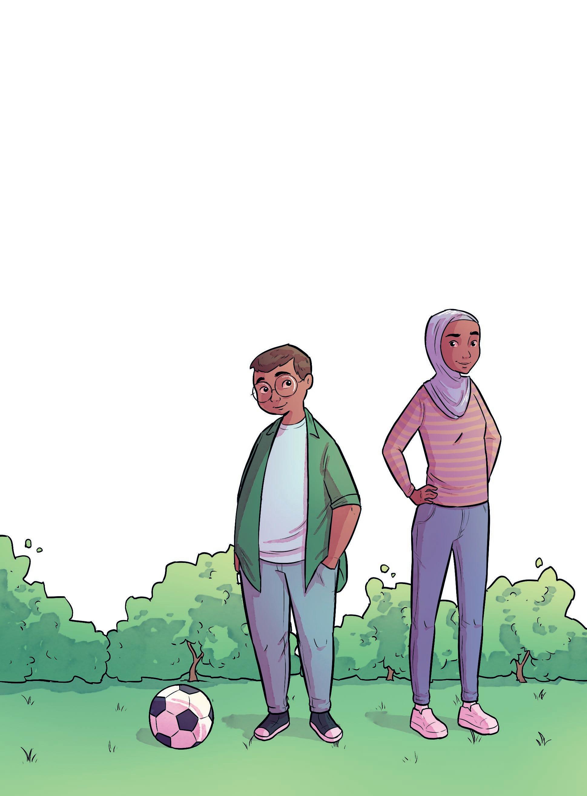Rami och Bilal sitter på bänken och väntar på Tuva och Hiba.