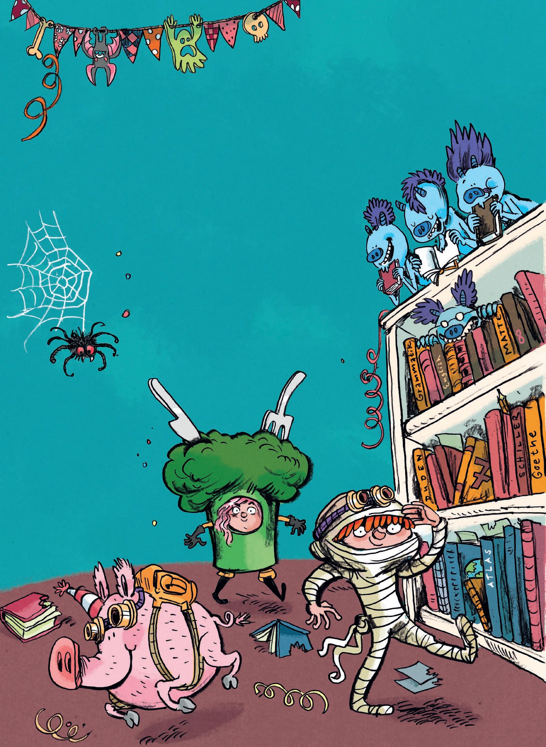 vaktmästare Valle har upptäckt en hemsk sak. Det gömmer sig riktiga monster bland gästerna! De äter upp skolans böcker, och rektorn är utklädd till en bok … Tänk om hon blir uppäten!