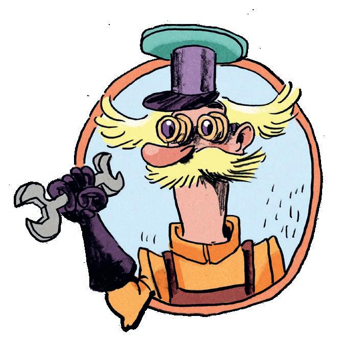Farfar är världens bästa uppfinnare. Han är sällan med på monsterjakt. Han har för mycket att göra i sin bod.