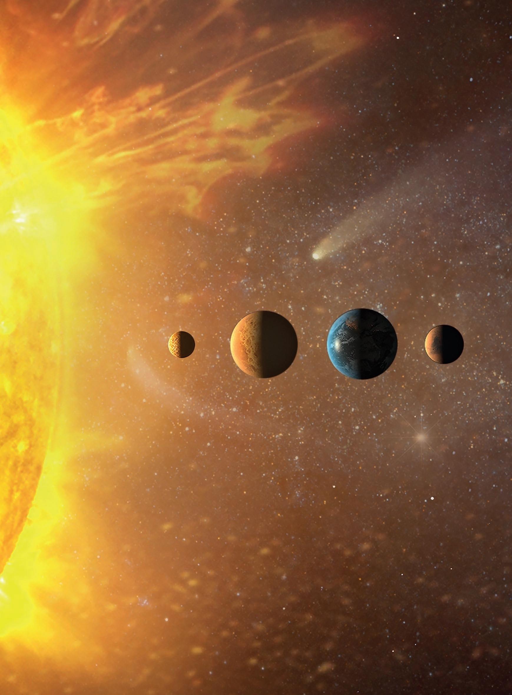 I vårt solsystem finns planeter, kometer, asteroider och en stjärna: solen.