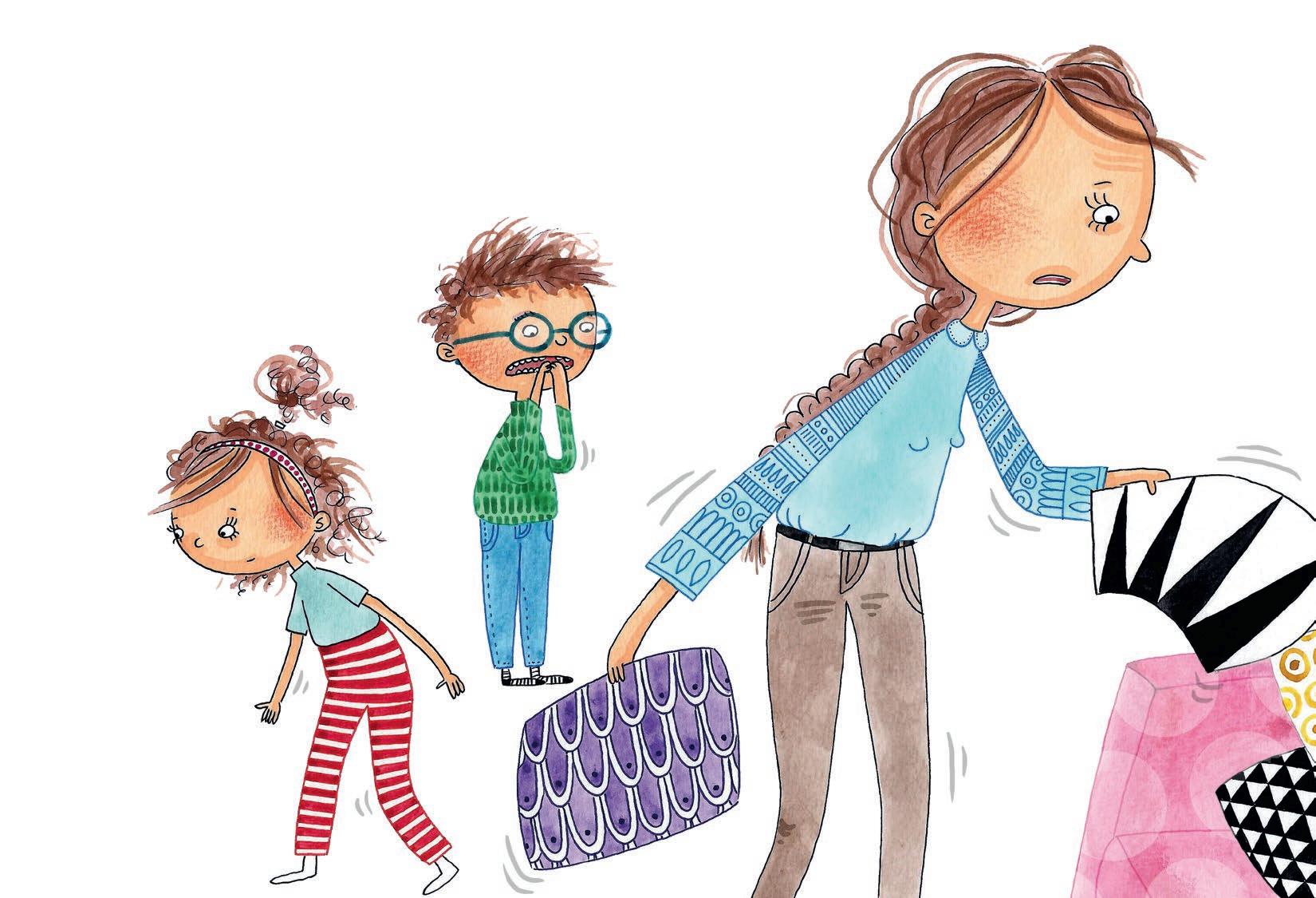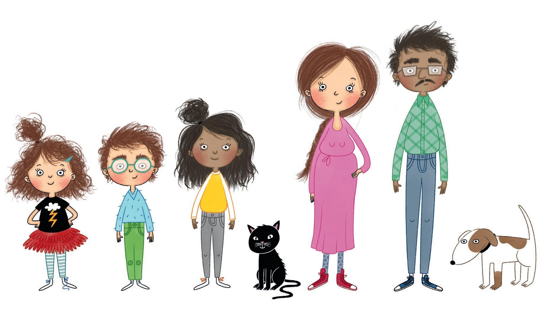 – Familjen på Lingonvägen består av pappa Rabi, sjuksköterska, mamma Moa, lärare, Olga nio år och tvillingarna Igor och Ester som är sju år. Och så katten Sotis och hunden Bruno! Det är en ovanligt vanlig familj som är med om små äventyr i vardagen: en tand som lossnar oväntat, ett barn som rymmer i simhallen, en tokig fisketur eller det läskiga med att ta fel buss till skolan.