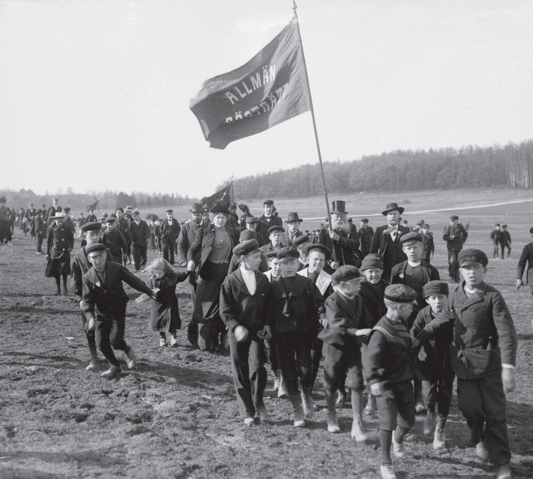 Demonstration för allmän rösträtt på Ladugårdsgärdet i Stockholm första maj 1901.