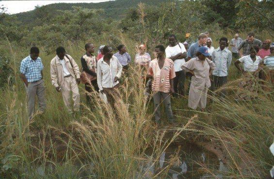 3. Framers arestudyingVetiver as erosionprotectionina Zambianfield. (PhotoJ.Åkerman)