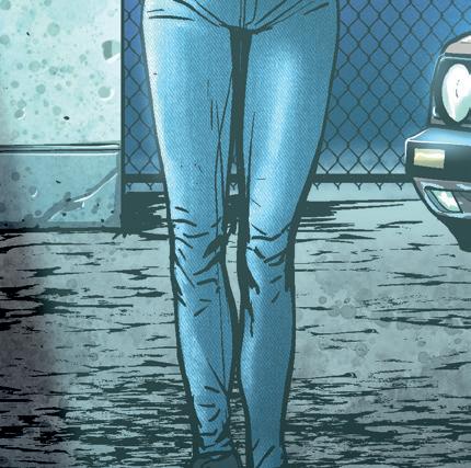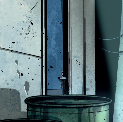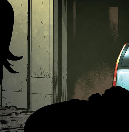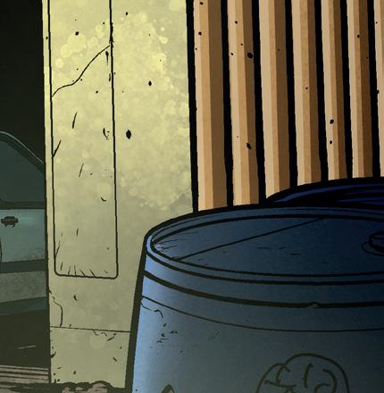 Vi hör tjejens röst inifrån garaget.
