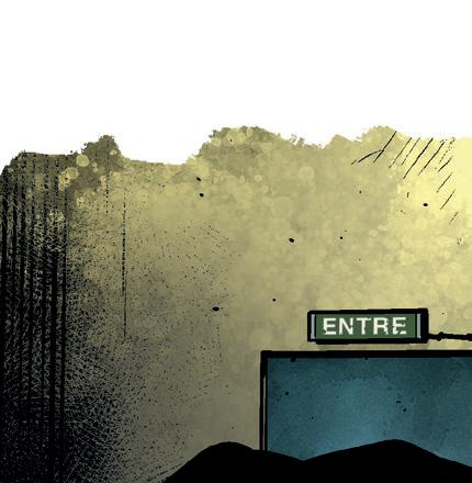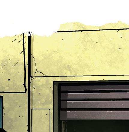 Till slut åker han till ett stort garage i utkanten av stan. Vi kliver av cyklarna och gömmer dem bakom