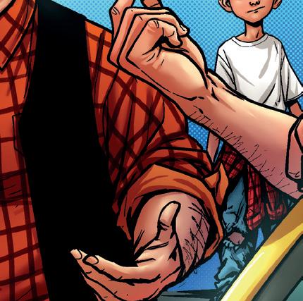 – Är det någon vuxen här? frågar han. Den som äger verkstan? – Det är min pappa, säger jag.