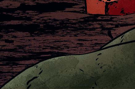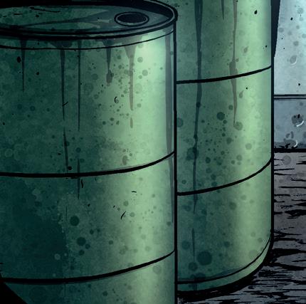 Vi slänger oss ner och gömmer oss bakom en oljetunna.