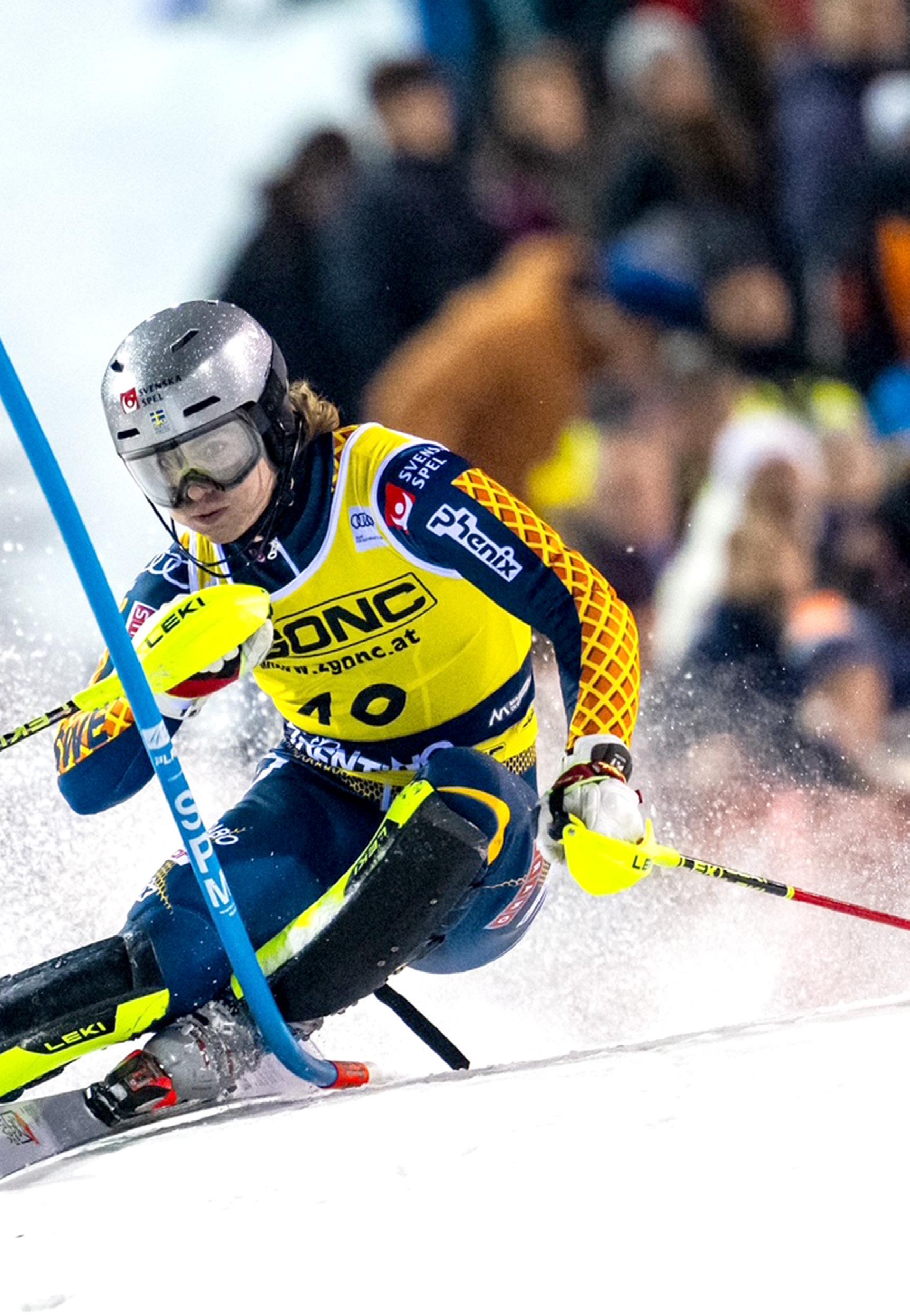 Det var kul och det visade sig snabbt att jag var bra på slalom . Nu tävlar jag på den högsta nivån . Jag är med i landslaget och kör världscupen runt om i världen . Det bästa med slalom är variationen . Jag har sällan två likadana dagar i backen . Väder, snöförhållande, backe och banor ändras hela tiden . Och jag får uppleva många platser när jag reser runt på tävlingar och träning .