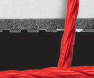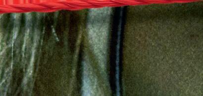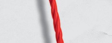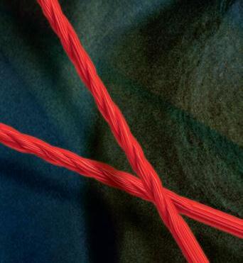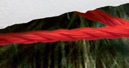 Hedvig har lånat rött garn från mammas stickning och försökt dra ledtrådar mellan bilderna. Men det ser mest ut som trassel.