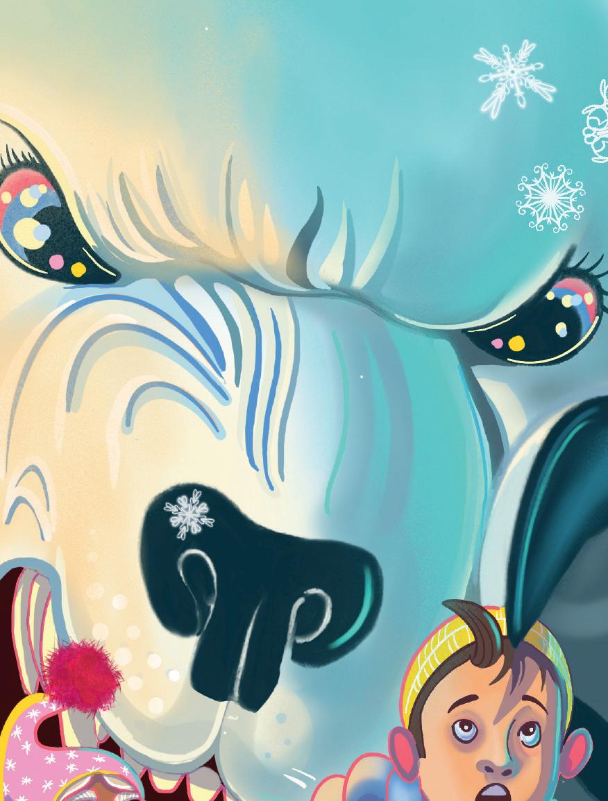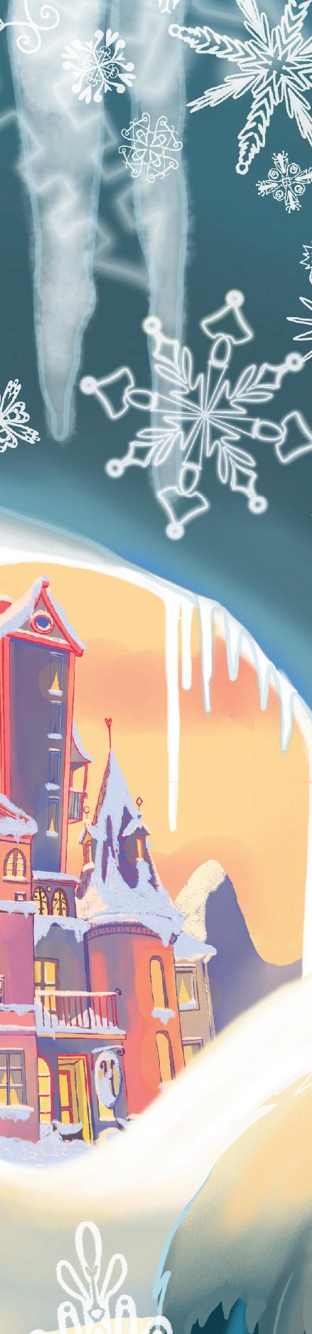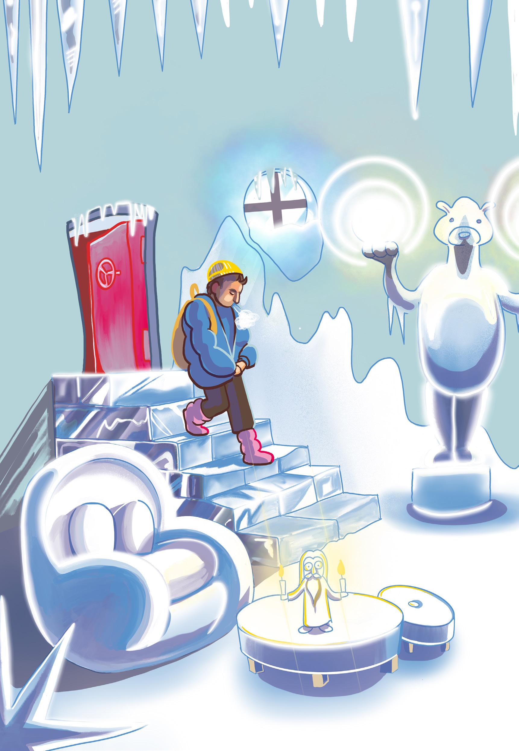 is-rummet är det snö och is överallt. Mitt i snön står gästen och är ledsen.