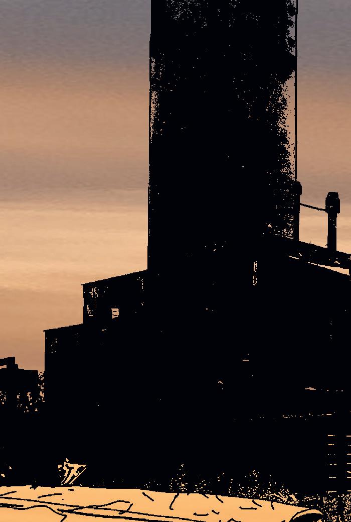 tillbaka. Som en mörk pelare sticker gruvans gamla torn upp över trädtopparna. ”Lave”