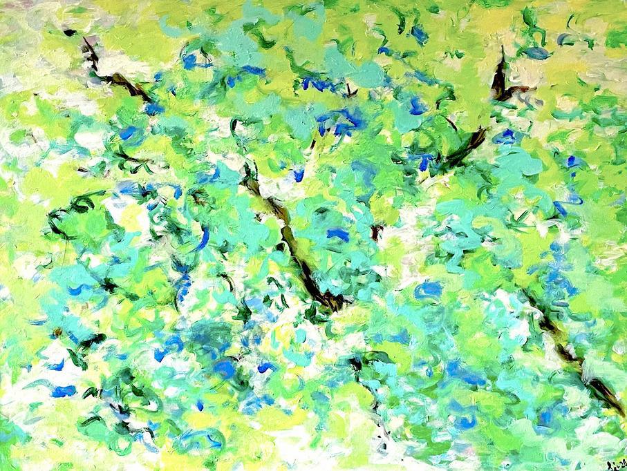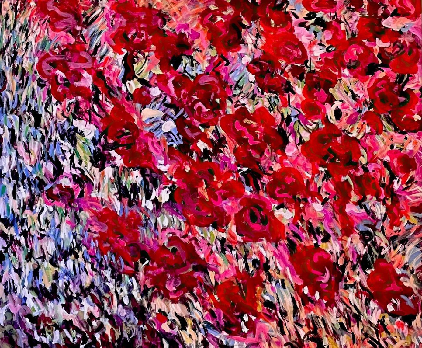 Målningarnaoch dikterna varfrånbörjanheltfriståendefrånvarandra, mendevisadesig innehålla en rödtrådmed uttryck somärbesläktade ochsom förstärker varandra.Debidrar till en dynamiksom vill berättaom känslorsom bjudsinuti de färgstarka ochsuggestiva målningarna.