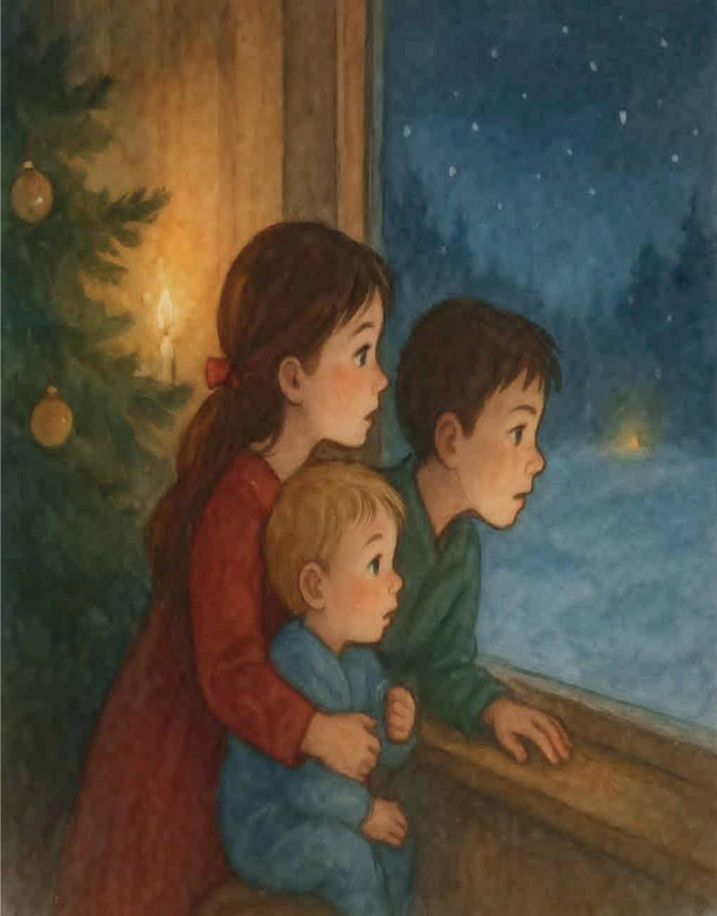 Stjärnljus på gården är en berättelse om tresyskon, ett förlorat ljus ochenliten nissesom försöker hitta vägen heminnan julnattenfaller.
