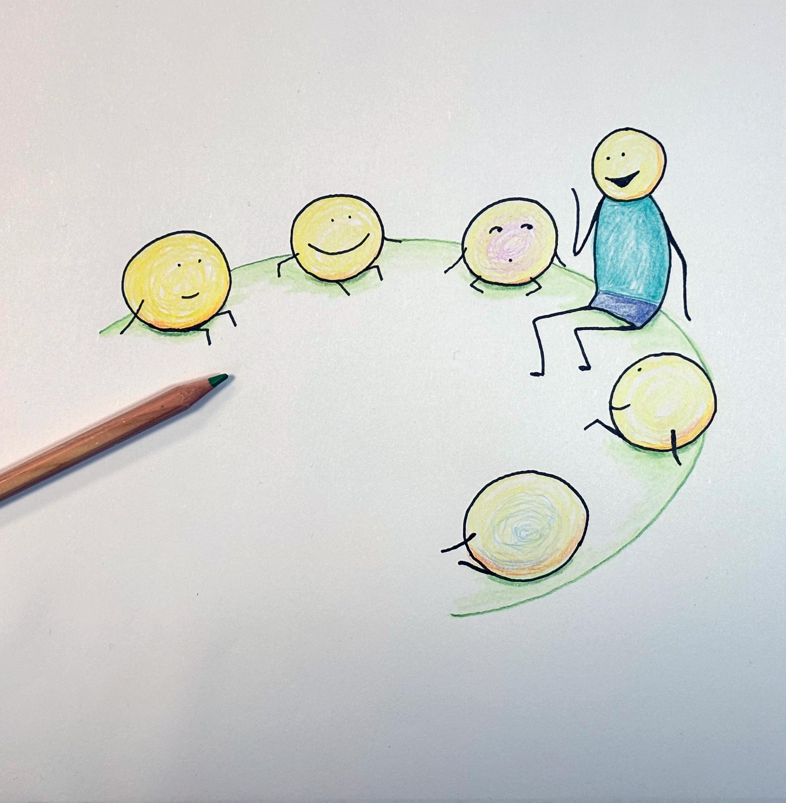 Idin hand håller du en ritprat-boksom är tänktatt väckanyfikenhet och förståelse förandraskänslor ochperspektiv. Använd dengärna sominspiration till eget ritprat.