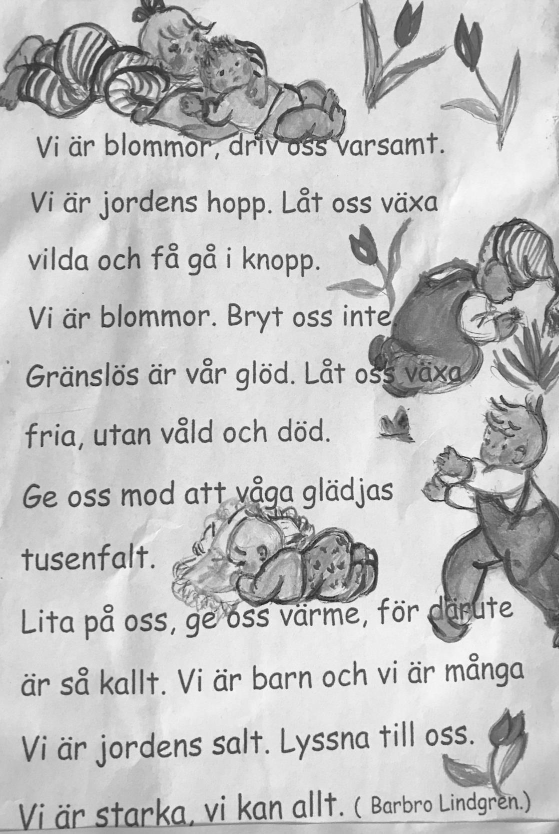 En sak,somjag visste ochvet,äri alla fall attjag älskar ochalltid harälskatbarn. Närjag varsju år gick jagpåpromenadmed små barn iett-två årsåldern. Idag undrar jaglitehur de vågade låta migtadet ansvaret.Vilketförtroendejag fick!