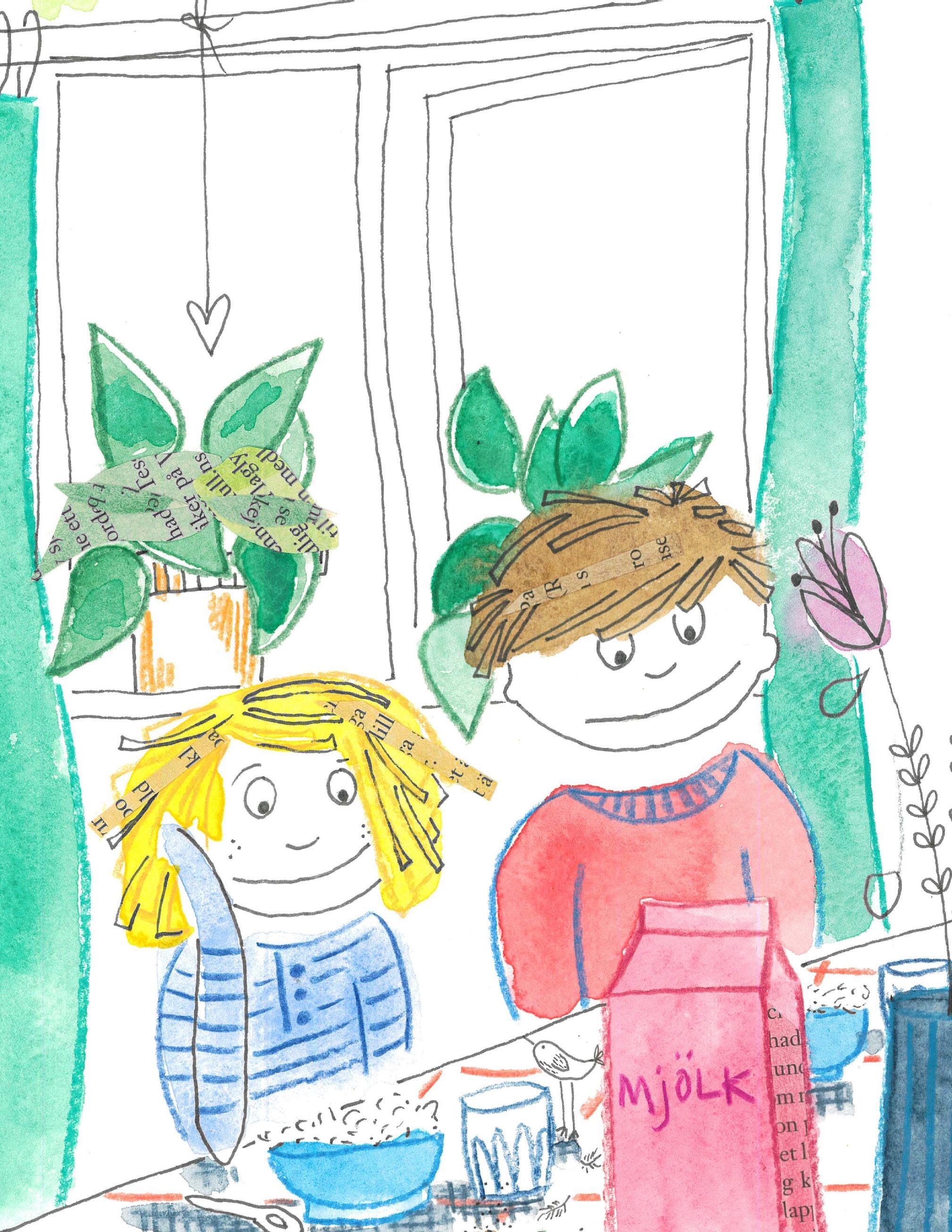 Mamma och pappa lämnade köket och kvar vid köksbordet satt de båda syskonen.