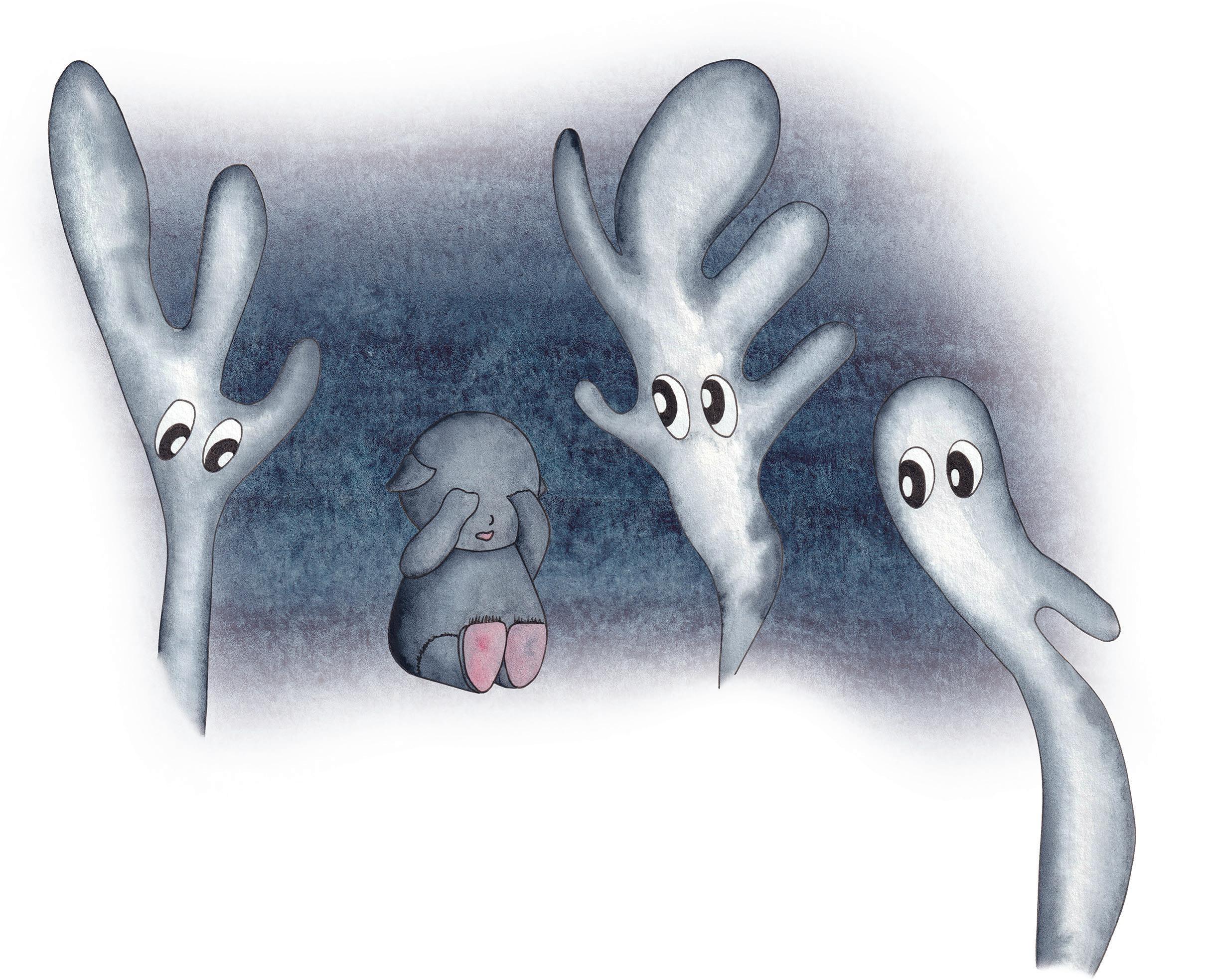 När små barn hörde monstret blev de själva förskräckta och började gråta. Barnen brukade säga till sina föräldrar att det fanns monster under sängen. Monstret förstod inte vad de pratade om, han såg ju inget monster.