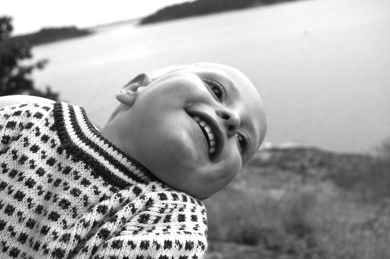Du drömmer nog om vÄgorna som rullar in och som slÄr upp mot din lilla kropp och kittlar dig pÄ magen. Du stÄr lutad med din rygg mot mina smalben i vattenbrynet för att kunna hÄlla balansen. Dina gulliga, tjocka smÄ fötter borrar sig allt lÀngre ner i sanden och du kniper med tÄrna. Du strÄlar av lycka.