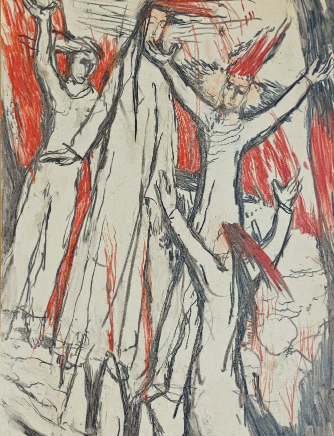 Much of hisart has its origins in experiences from aworld beyond thephysical one. The compositionsare loadedwith acomplex symboliclanguage –sometimesthe depictionofa violent event, sometimesan encounter in dazzlinglight– while others illustrateBiblicalstories.