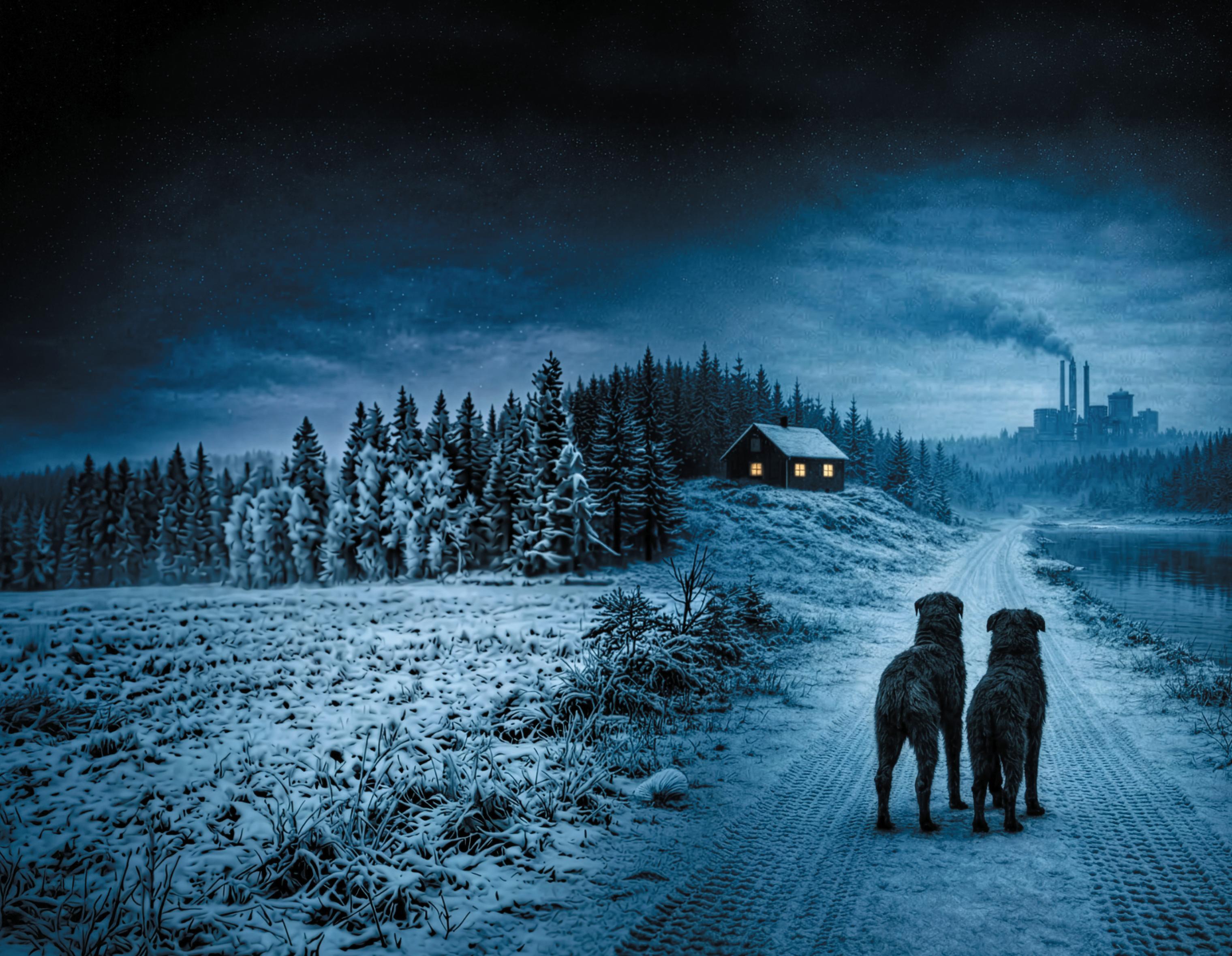 Hundarna reagerar först. Bilarpasserarför långsamtpåvägen motden övergivnacementfabriken. Något rörsig kringsjön.