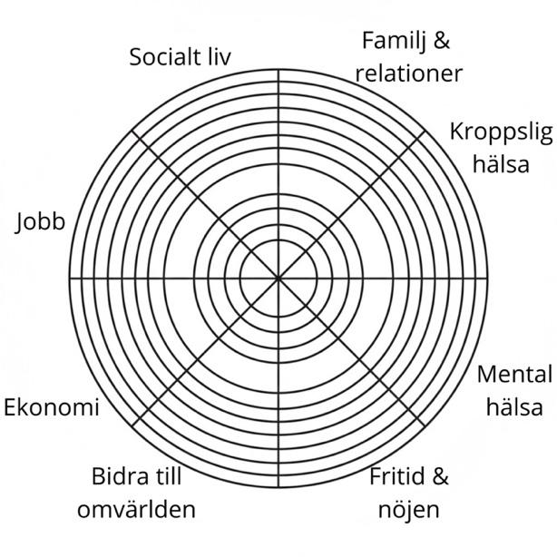 Föreställ dig ett "Livshjul" med 8 tårtbitar för olika delar av livet. För att livet ska fungera behöver du se till att alla delar av livshjulet kan fungera.