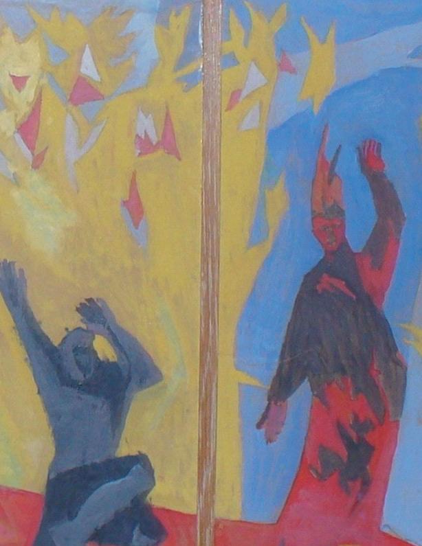 Plötsligtennattislutetav 1930-talet förmådde hangenom konstengestaltasinadjupt andligaerfarenheter. Ilängtan efter befrielsehadehansandliga ochhanskonstnärliga världförenats, befruktats ochberikats. Upplevelsernatog gestalt, flödadesom rytmer, former ochsymbolerutöverpappersarksom hanhadeframför sigpågolvet. Hanvar hudlös idenna gränslösadimension.Som en eteriskpilgrimsled växteandensvisuella språkfram. Ibland somskörpoesi,iblandmed dramatiskvåldsamhet.