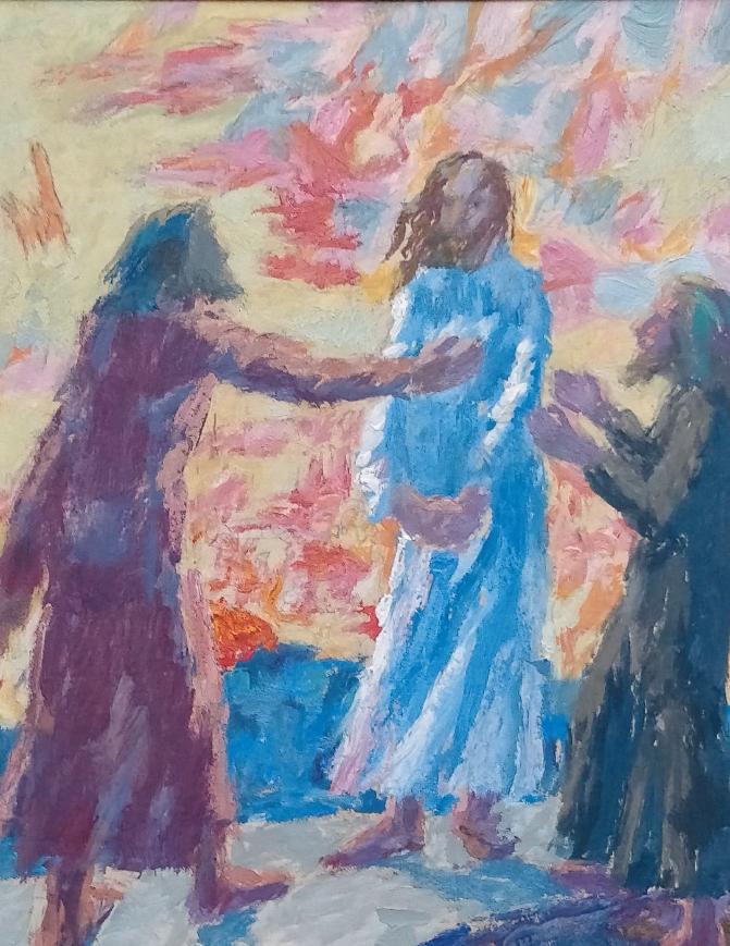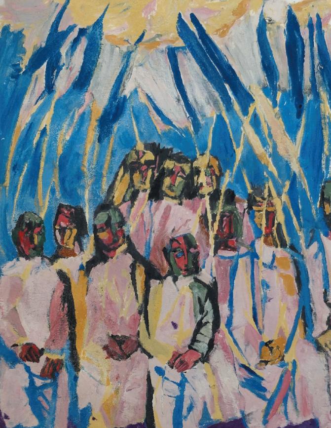 En stor del av hanskonst har sittursprung iupplevelser från en världbortomden fysiska. Kompositionerna är laddade medett komplext symbolspråk, ibland en gestaltning av en våldsam händelse,iblandett möte ibländande ljus, andraverkkan vara en illustration av en bibelberättelse.