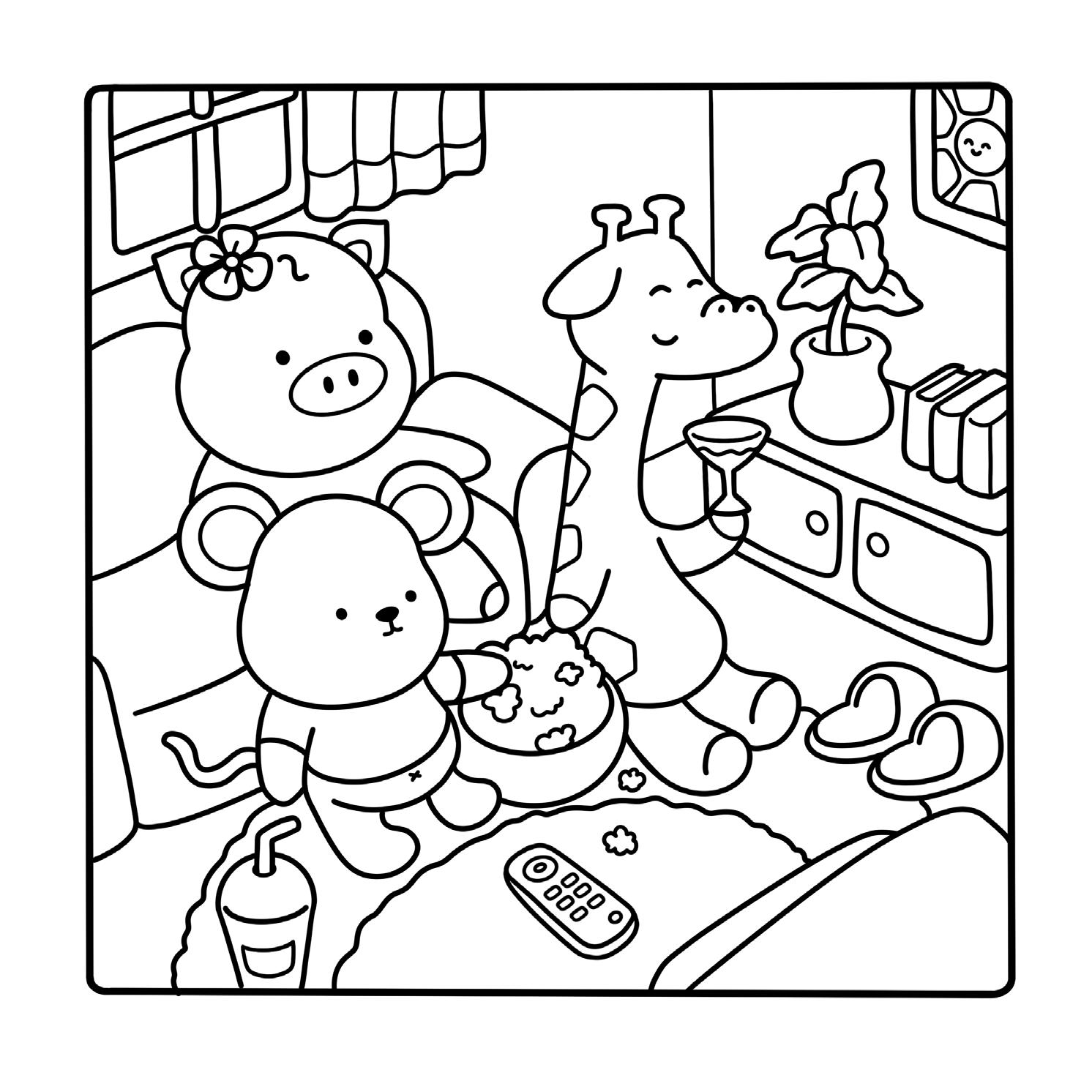 Välkommen till en värld där djuren lever sina liv med nyfikenhet, värme och en gnutta bus. Här får du möta dem i alla möjliga stunder – när de tältar, bakar, shoppar, pysslar, myser och upptäcker världen omkring sig. Ibland bjuds det på kalas, ibland på strandhäng, gympass eller en tur med tunnelbanan. Alltid med en känsla av gemenskap, fantasi och charm.