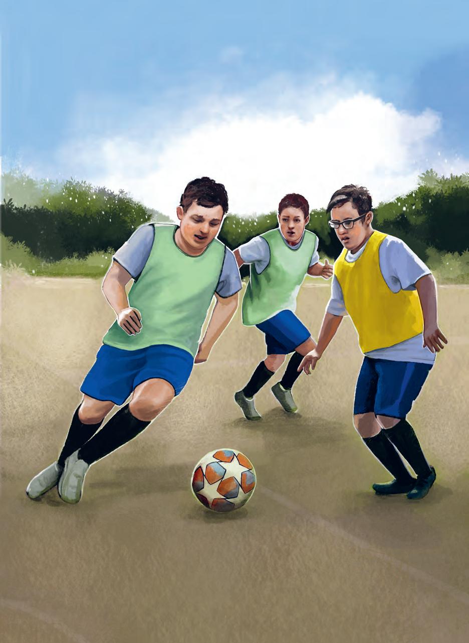 Simon tränar fotboll med sitt lag.