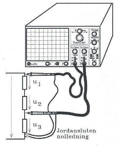 6. Kontrollera att summan av spänningarna som mättes i punkt 4 och 5 är lika med spänningen som mättes i punkt 3.