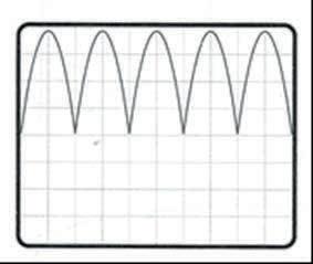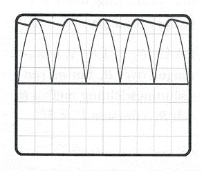 4. Mät rippelspänningens top-till-topp-värde URIP med oscilloskopets ingång i AC-läge. Ställ Time/div på 10ms/ruta och V/div på 0,1V/ruta. Rita av kurvformen.