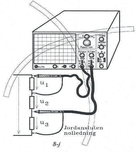 10.Kontrollera att summan av spänningarna i punkt 8 och 9 är lika med spänningen som mättes i punkt 7.