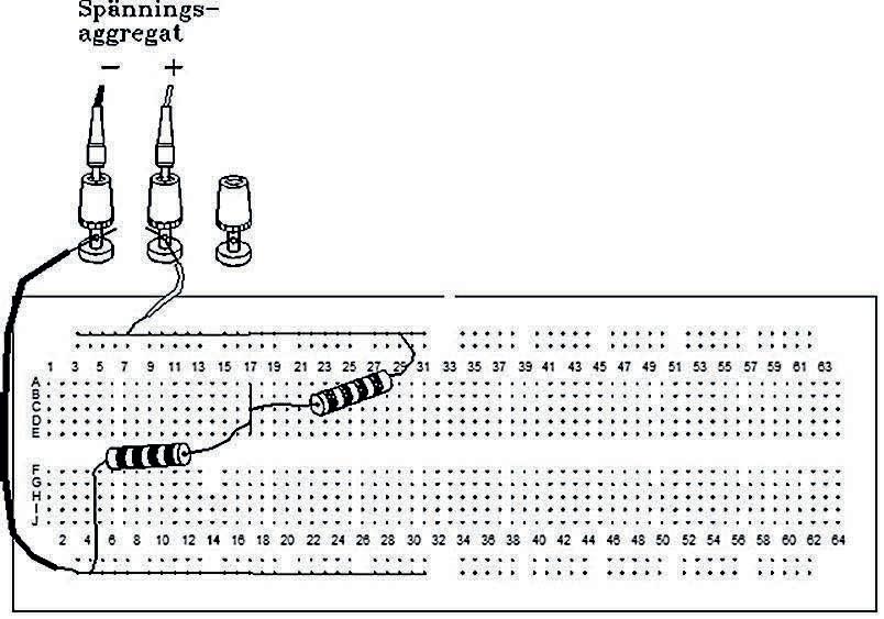 Experimentkretsarna i mätuppgifterna kopplas med lösa komponenter på en kopplingsplatta med lödfria anslutningar.